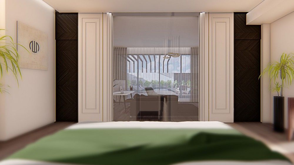 A Neoclassical design style apartment as per customer request with a rooftop outdoor recreational space.
